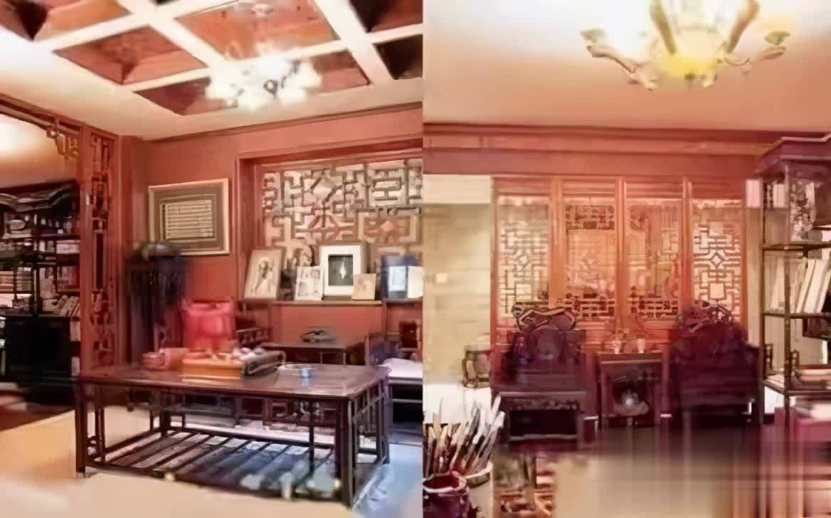 陈道明家中满满的书香气,红木家具在灯光的照射下大气又上档次,家中吊顶选用了正方形设计很是有创意,家中的物品与小摆件可以说非常多每一样都非常精致,凸显文化底蕴营造出宫殿般的视觉体验。